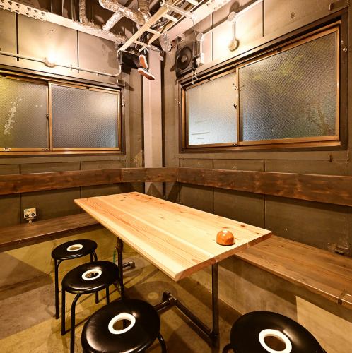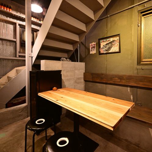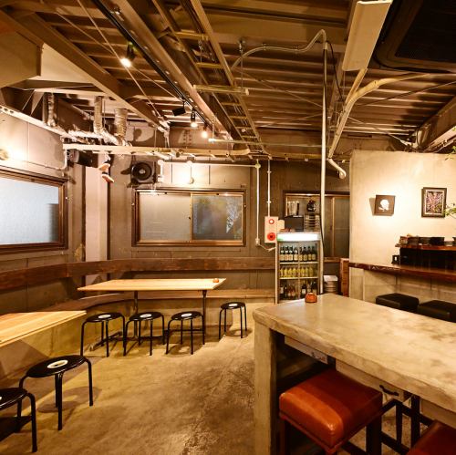 店内はインダストリアルな大人空間。仲間とワイワイ楽しめる個室や一人飲みにぴったりのカウンター席、デートにおすすめの秘密基地のような階段下の2名様ソファー席などご用意しております。
