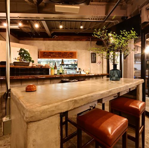 異素材を組み合わせ、シンプルながらも存在感のある独特な雰囲気に仕上げた1階には、壁に面して4名様席×1卓、6名様席×1卓、入口近くに4名様席×1卓、テーブル席をご用意しております。最大14名様までご利用いただけます。会社帰りのご宴会やご友人との飲み会など少人数宴会はもちろん、中規模のお集りにもおすすめです♪