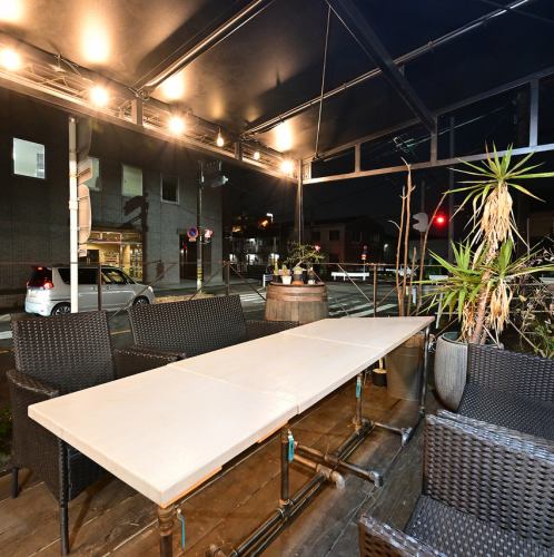 屋外にはテラス席をご用意。2名様席、6名様席があり、貸切で最大18名様までご利用いただけます!